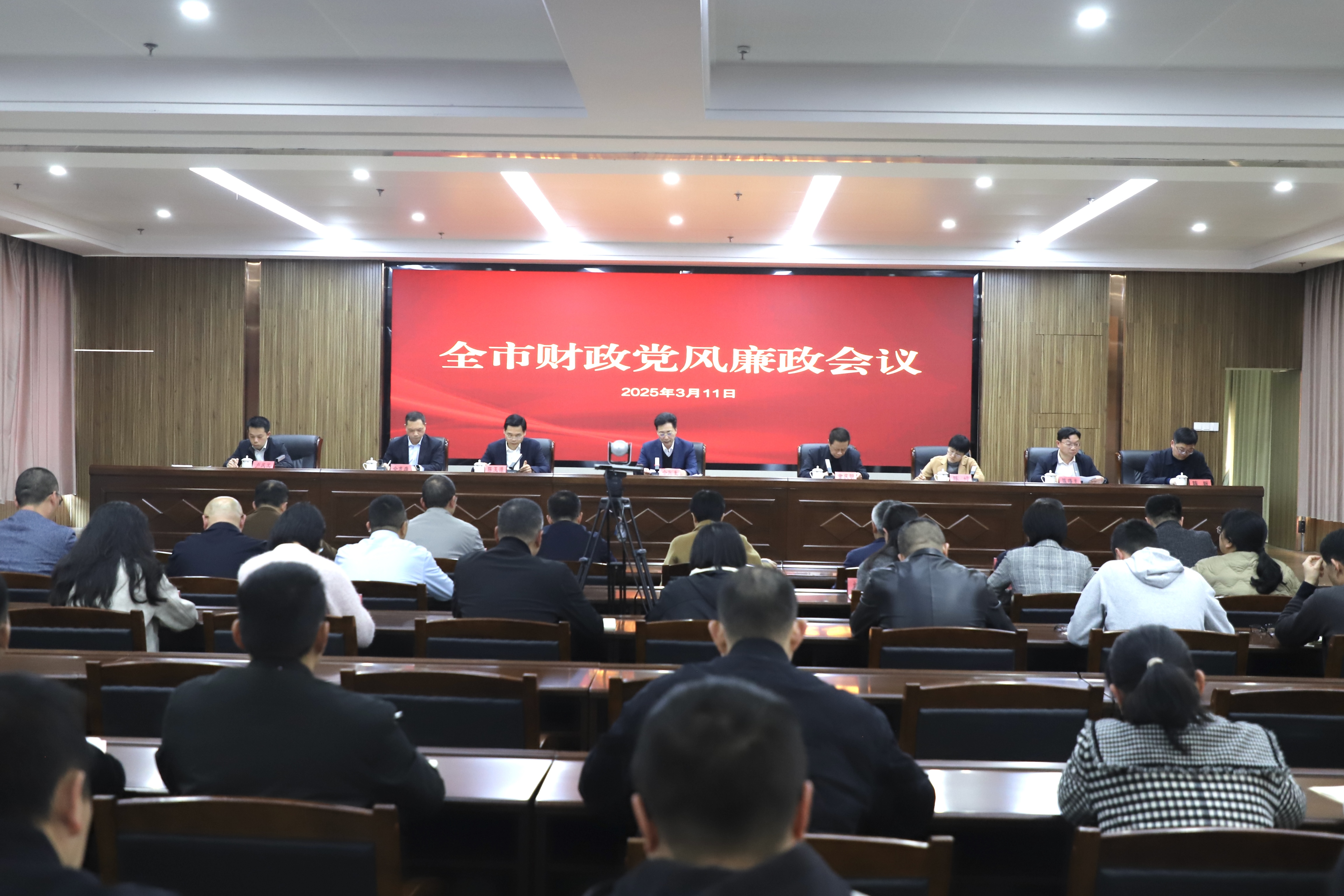 市财政局全体干部职工在主会场参加会议。各县区(管委会)财政局(财金局)班子成员、派驻纪检监察组组长(纪工委书记),机关股室及所属事业单位负责人在分会场以视频形式同步参加会议。