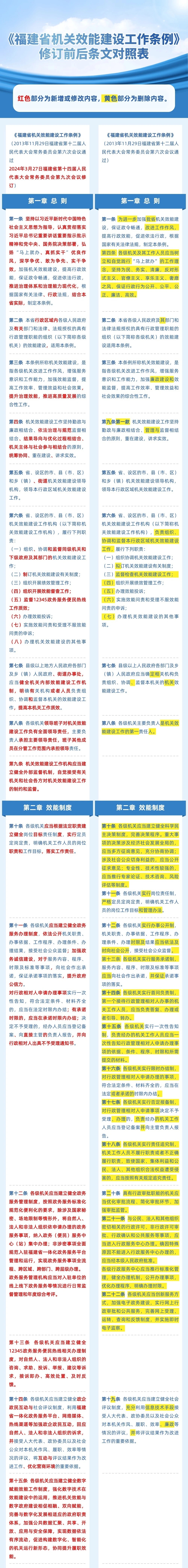 《福建省机关效能建设工作条例》修订前后条文对照表